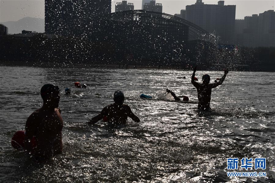 12月20日,冬泳愛(ài)好者準(zhǔn)備上岸。新華社記者賀長(zhǎng)山攝