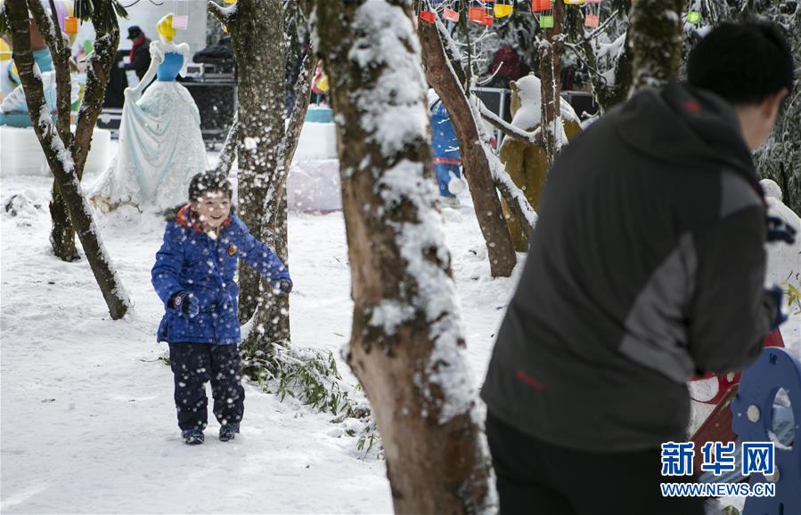 12月28日,小朋友在峨眉山風(fēng)景名勝區(qū)打雪仗。新華社記者李夢馨攝
