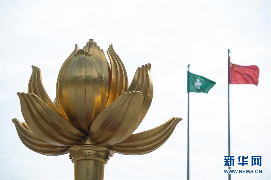 這是12月13日拍攝的澳門金蓮花廣場上的《盛世蓮花》雕塑。 新華社記者 張金加 攝