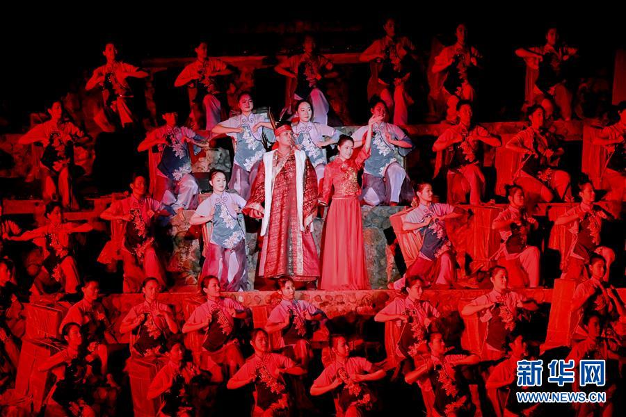 12月30日,演員在武夷山表演《印象大紅袍》。當日,福建武夷山“印象大紅袍十周年公益晚會”在風光秀麗的大王峰下舉行。《印象大紅袍》《印象劉三姐》《印象麗江》《又見平遙》《印象武隆》《印象西湖》六部“印象家族”作品同臺亮相。這場公益晚會票房收入將全部捐獻給南平市紅十字會,用于資助閩北山區(qū)貧困家庭。 新華社記者 張國俊 攝