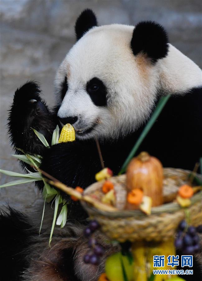 12月31日,大熊貓“貢貢”在“擼串”。 新華社記者 楊冠宇 攝