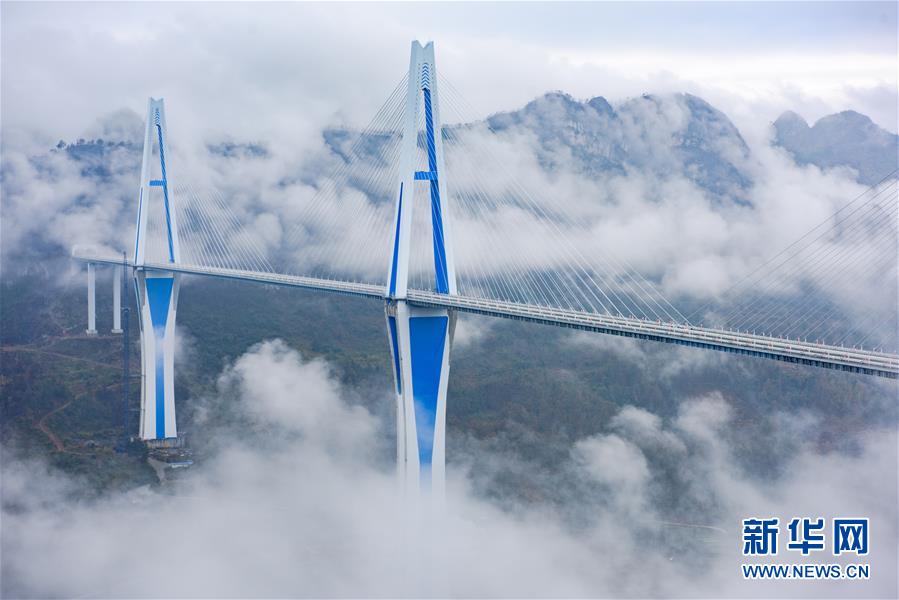 12月30日,云霧繚繞中的貴州平塘特大橋。新華社記者劉續(xù)攝