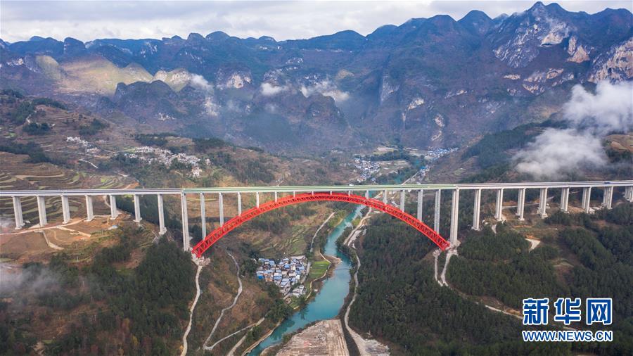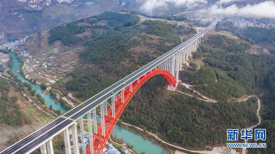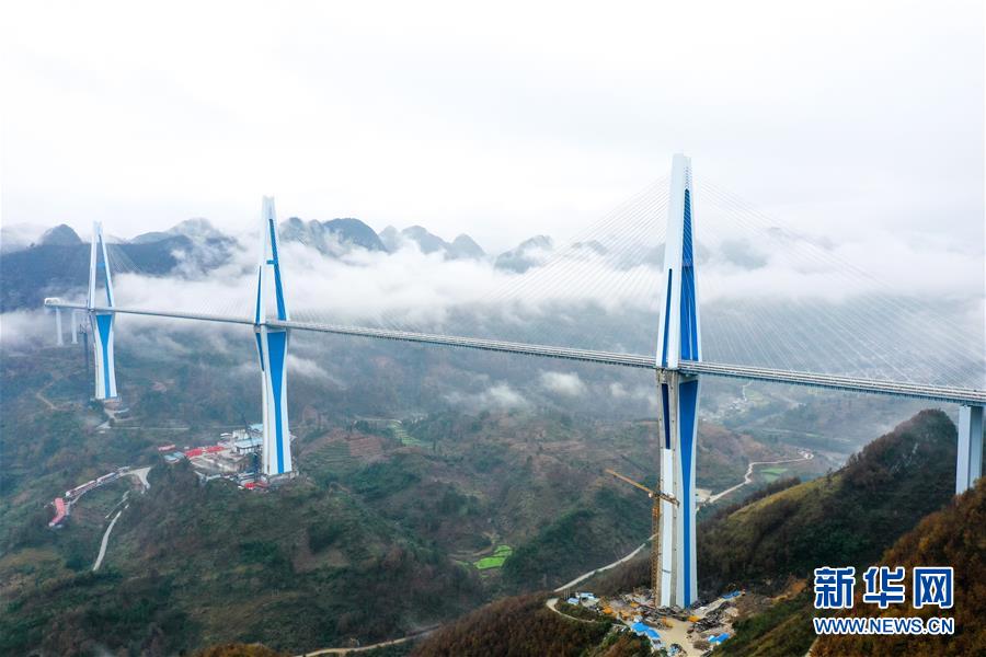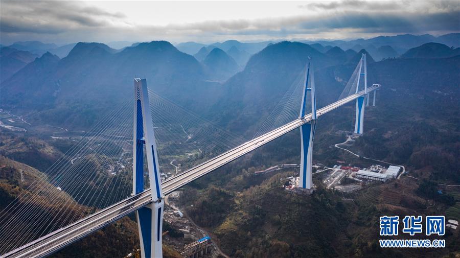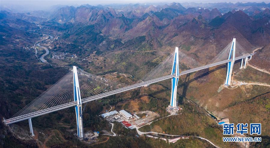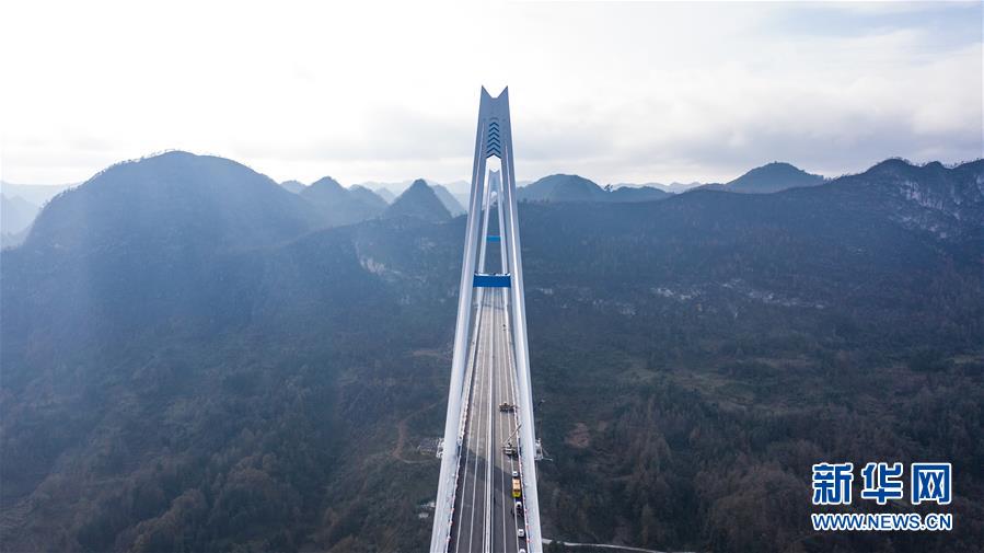 這是貴州公路開發(fā)公司承建的平羅高速平塘特大橋(無人機(jī)照片,2019年12月29日攝)。新華社記者陶亮攝
