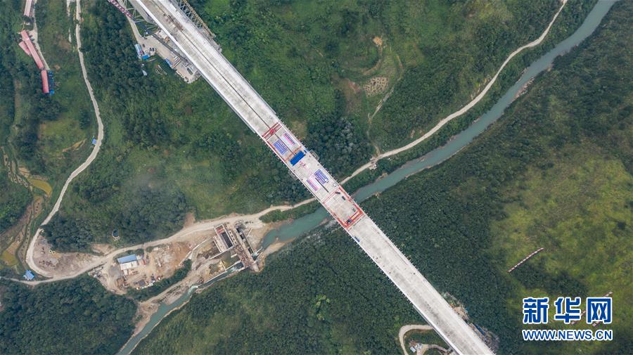 這是正在澆筑最后一方混凝土的平塘特大橋(9月26日無人機(jī)拍攝)。新華社記者陶亮攝