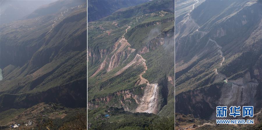 阿布洛哈村通村公路的修建過程(這是一張拼版照片,從左至右依次拍攝于2018年11月15日、2019年7月18日、2019年12月27日)。3.8公里的通村公路起于布拖縣拉果鄉(xiāng)偉木村,止于烏依鄉(xiāng)阿布洛哈村村委會。新華社記者江宏景攝
