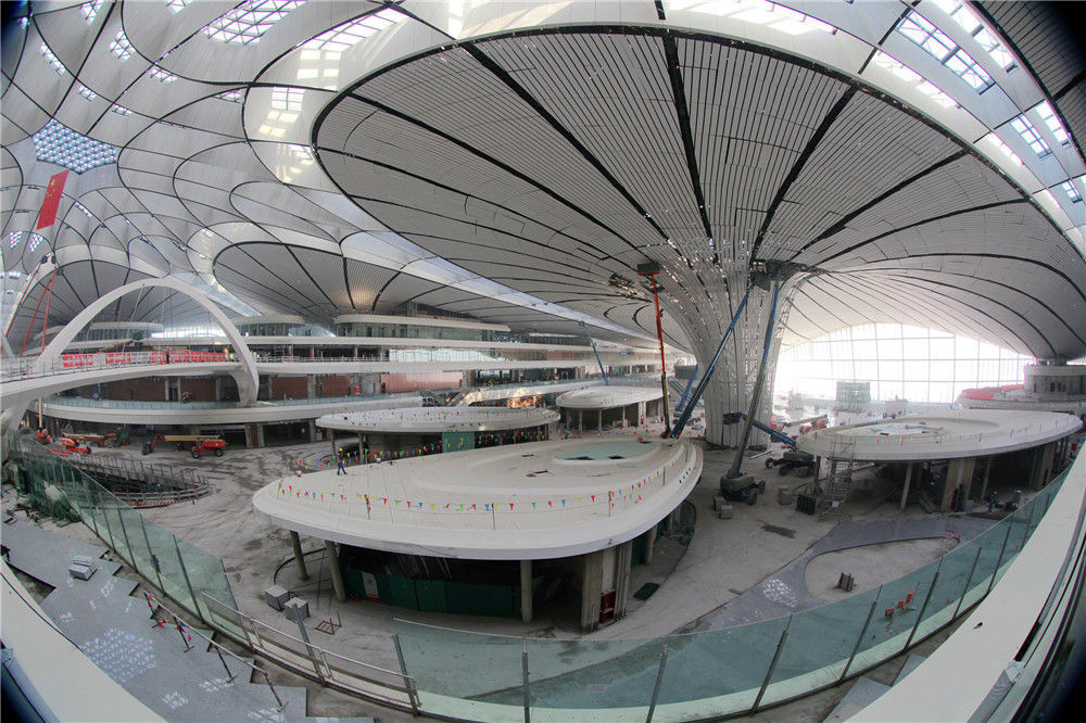 2019年1月20日,北京,探訪北京大興國(guó)際機(jī)場(chǎng)航站樓,建設(shè)工地正在如火如荼地有條不紊地建設(shè)之中。丁幫學(xué)/千龍圖像/視覺中國(guó)
