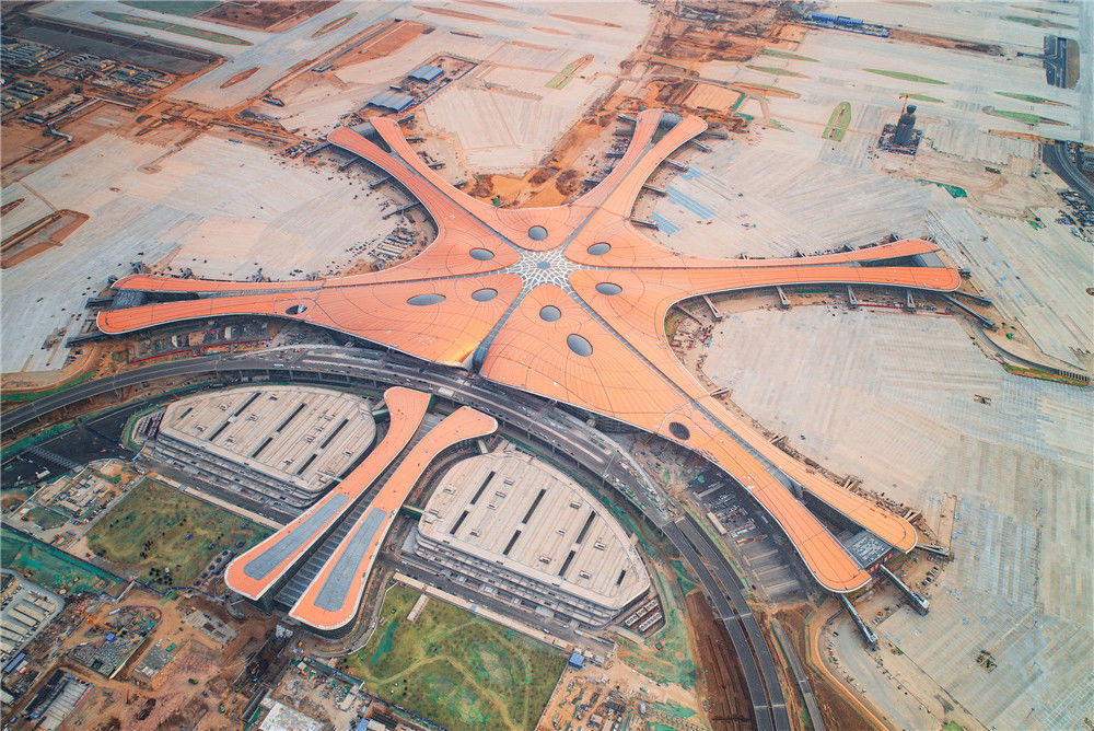 2018年12月26日,航拍北京大興國際機(jī)場,形如展翅的鳳凰。大興國際機(jī)場由普利策獎建筑學(xué)獎獲得者扎哈設(shè)計,預(yù)計2019年6月30日前全面竣工,2019年9月30日投入運(yùn)營。張喬/視覺中國