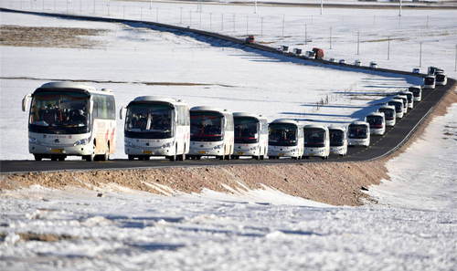 2019年12月23日拍攝的西藏那曲市雙湖縣牧民的遷徙車(chē)隊(duì)。西藏那曲市雙湖縣嘎措鄉(xiāng)、措折羌瑪鄉(xiāng)、雅曲鄉(xiāng)共2900人,告別了平均海拔5000米的家鄉(xiāng),經(jīng)過(guò)近千公里搬遷到海拔相對(duì)較低的藏南雅魯藏布江南岸的貢嘎縣境內(nèi)。這是西藏自治區(qū)近年來(lái)實(shí)施的極高海拔生態(tài)搬遷項(xiàng)目之一,雙湖縣三個(gè)鄉(xiāng)的整體搬遷是其中人數(shù)最多、跨度最遠(yuǎn)的一次搬遷。新華社記者覺(jué)果攝