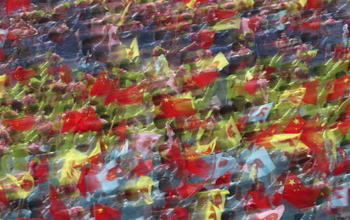 2019年10月1日,慶祝中華人民共和國(guó)成立70周年大會(huì)在北京天安門(mén)廣場(chǎng)隆重舉行。這是行進(jìn)中的群眾游行方陣。新華社記者蘭紅光攝
