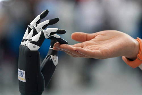 2019年6月13日,全國大眾創(chuàng)業(yè)萬眾創(chuàng)新活動(dòng)周——北京會(huì)場主題展在中關(guān)村國家自主創(chuàng)新示范區(qū)展示中心開幕。這是一位參展商在演示展出的機(jī)器人產(chǎn)品。新華社記者鞠煥宗攝