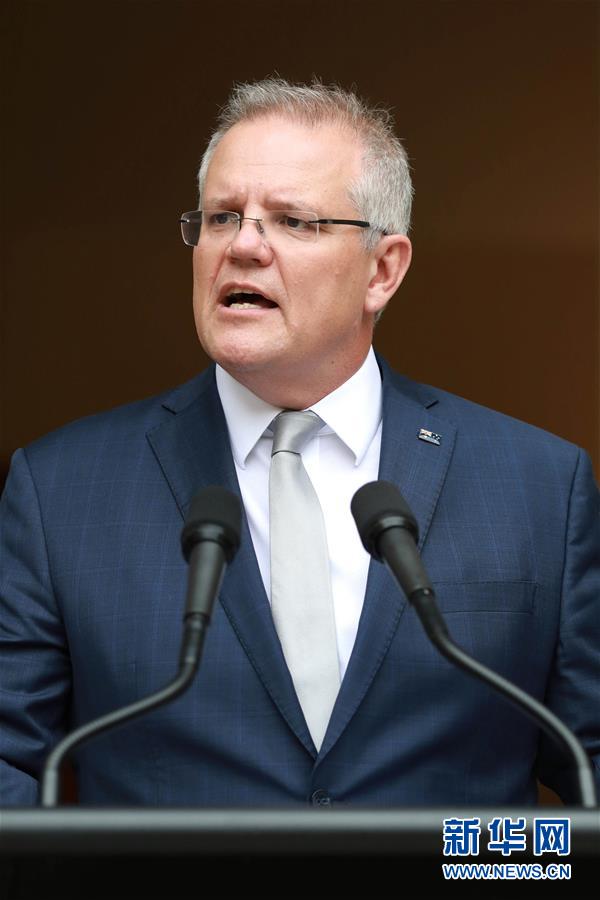 1月6日,在澳大利亞首都堪培拉,澳大利亞總理莫里森(左)在國會大廈出席新聞發(fā)布會。新華社記者白旭攝