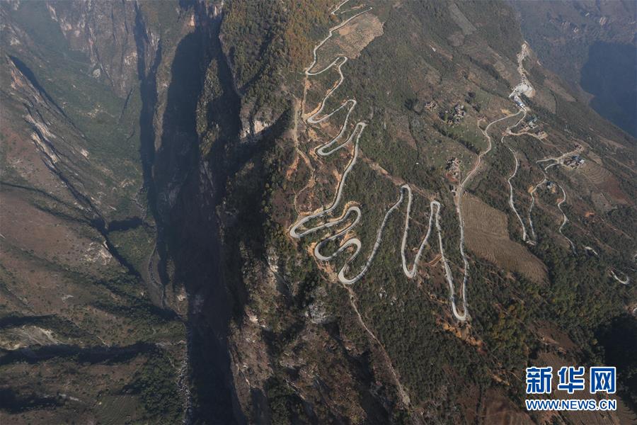 俯瞰布拖縣烏依鄉(xiāng)阿布洛哈村通村公路的起點(diǎn)拉果鄉(xiāng)偉木村。從拉果鄉(xiāng)政府到阿布洛哈村通村公路的起點(diǎn)位置要經(jīng)過54個(gè)回頭彎(2019年12月7日攝)。 2019年12月31日,四川涼山彝族自治州布拖縣烏依鄉(xiāng)阿布洛哈村的懸崖擺渡車正式運(yùn)行,四川最后一個(gè)“無公路村”打通了對外通道,改變了閉塞的交通狀況。 阿布洛哈村三面環(huán)山,幾乎全是懸崖絕壁;一面依水,金沙江支流西溪河流淌而過。以前,村民們進(jìn)出村需攀爬懸崖上鑿出來的一條小路;村里的物資主要靠馬馱人背,走一趟要3個(gè)多小時(shí)。交通成為村里脫貧攻堅(jiān)最大的“硬骨頭”,全村65戶253人,目前仍有建檔立卡貧困戶29戶182人。 為打通交通瓶頸,當(dāng)?shù)卣疀Q定修建一條3.8公里的四級(jí)通村公路。2019年11月,工程在進(jìn)行到“最后一公里”時(shí),施工隊(duì)伍發(fā)現(xiàn)懸崖兩側(cè)多為碎屑巖、變質(zhì)巖等,原本規(guī)劃修建的C型隧道很難推進(jìn)。專家決定修建懸崖擺渡車,確保村民年底前能順利出行;同時(shí),改C型隧道為全隧道,繼續(xù)修建通村公路,項(xiàng)目預(yù)計(jì)2020年4月完工。 新華社記者 江宏景 攝