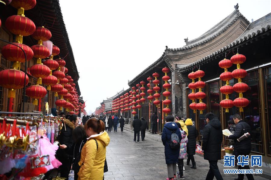 (2019年)2月13日,游客在平遙古城參觀。新華社記者楊晨光攝