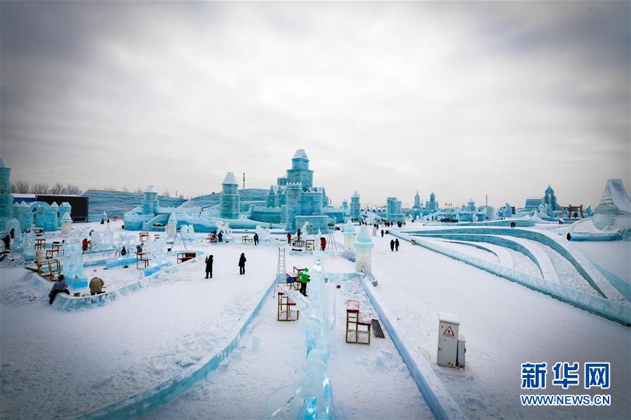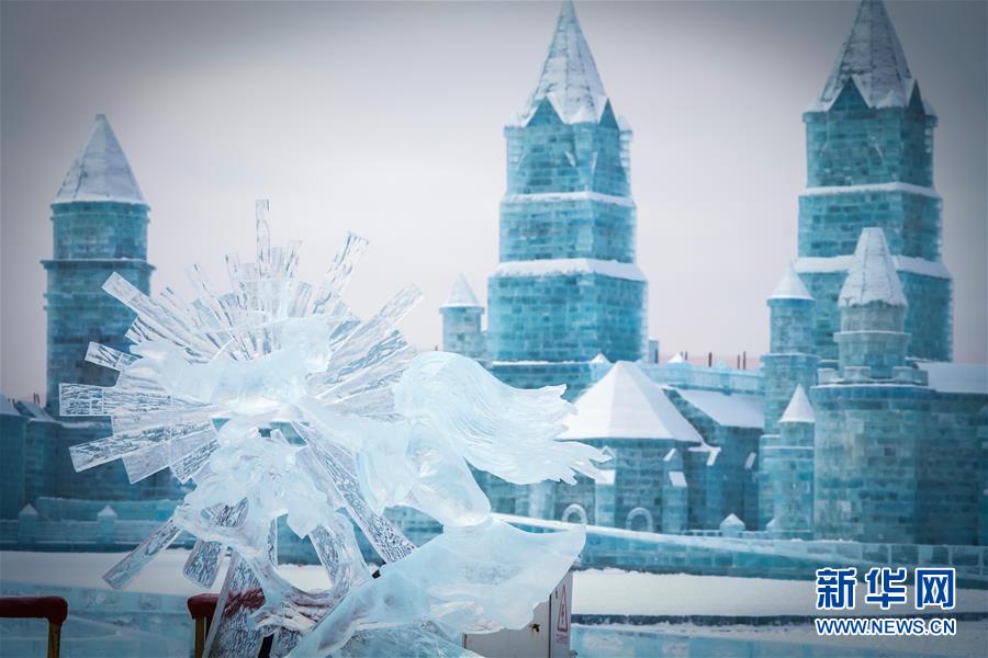 這是哈爾濱冰雪大世界園區(qū)中的景觀(1月5日攝)。每到冬季,天氣寒冷的冰城哈爾濱陸續(xù)迎來(lái)各類(lèi)冰雕雪雕賽事。從2019年12月7日起,采冰工人們?nèi)找共杀\(yùn)冰、冰景雪雕藝術(shù)家精心雕琢,這些“冰雪造夢(mèng)者”們?cè)趪?yán)寒天氣中辛苦付出,讓一座“冰雪之城”在松花江畔拔地而起,向來(lái)自世界各地的游客展現(xiàn)浪漫絢麗的冰雪奇觀。新華社記者王松攝