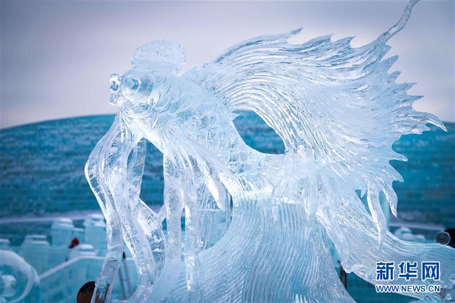在哈爾濱冰雪大世界內(nèi)拍攝的冰雕作品(1月8日攝)。近日,在哈爾濱冰雪大世界園區(qū)內(nèi)舉行的各項(xiàng)冰雕賽事中,經(jīng)過(guò)來(lái)自世界各地的冰雕選手悉心雕琢,一塊塊冰變身為精美的藝術(shù)作品,數(shù)十座冰雕仿佛晶瑩剔透的出“冰”芙蓉。新華社記者王松攝