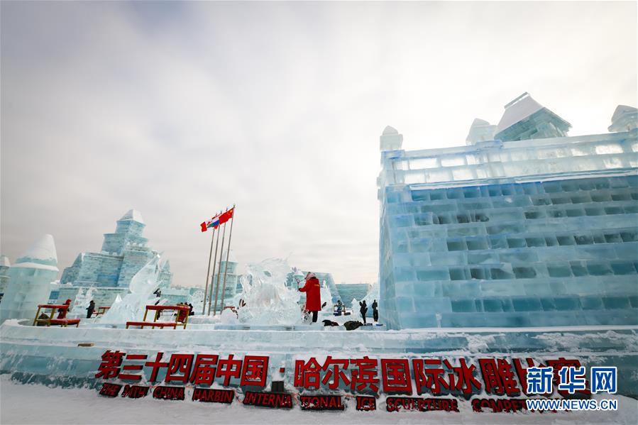 冰雕師在哈爾濱冰雪大世界內(nèi)雕刻出主題各異的冰雕作品(1月8日攝)。新華社記者王松攝
