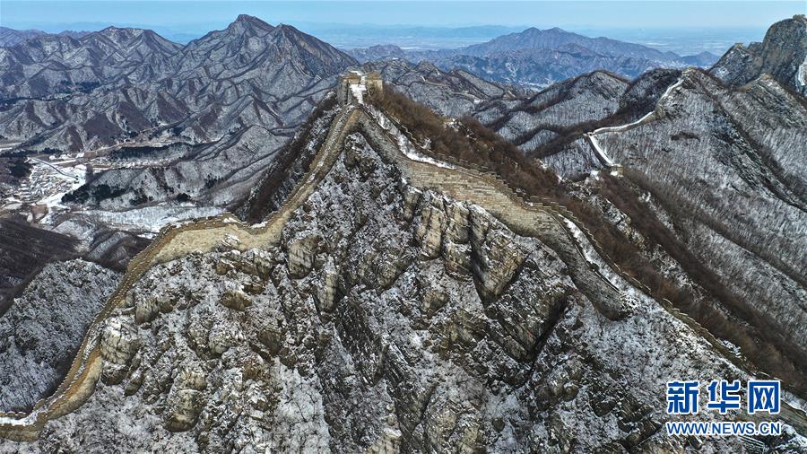 這是1月7日拍攝的北京箭扣長城雪景(無人機照片)。  新華社記者 陳曄華 攝