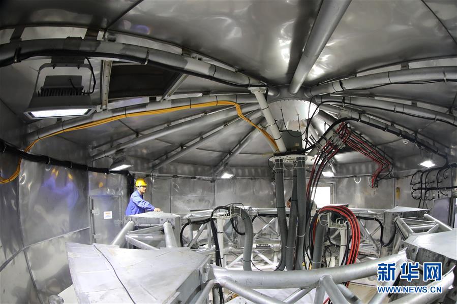 8月28日,工作人員在FAST饋源艙內(nèi)進(jìn)行檢修。新華社記者歐東衢攝