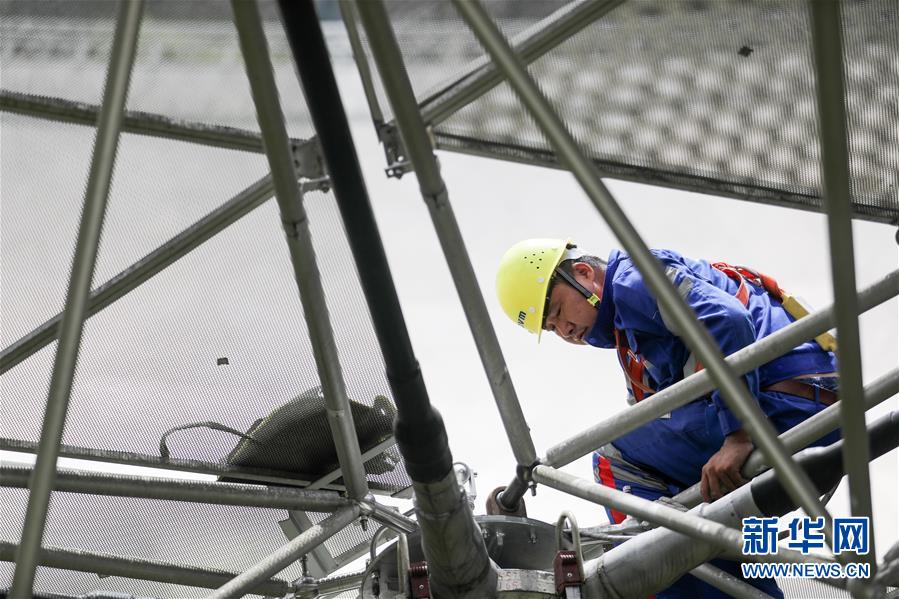 8月28日,工作人員在對(duì)FAST進(jìn)行檢修。近日,工作人員對(duì)“中國(guó)天眼”進(jìn)行日常維護(hù)和檢修,給“天眼”進(jìn)行全面“體檢”。被譽(yù)為“中國(guó)天眼”的500米口徑球面射電望遠(yuǎn)鏡(FAST)于2016年9月25日落成啟用,即將迎來(lái)落成三周年。新華社記者歐東衢攝