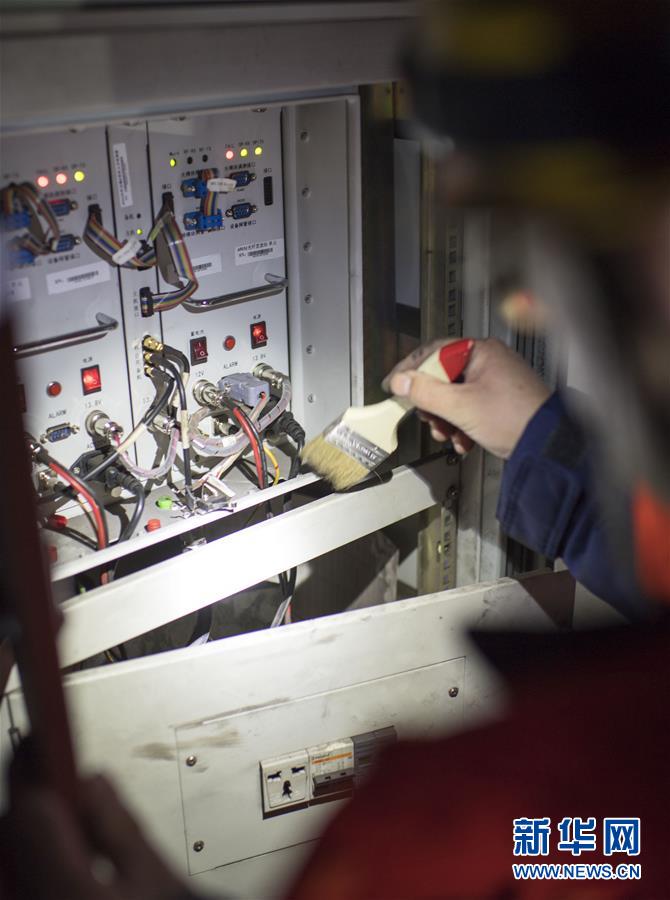 通化通信車間無線工區(qū)鐵路通信工人檢修維護(hù)隧道內(nèi)用于通信傳輸?shù)墓饫w直放設(shè)備(1月10日攝)。2020年春運1月10日拉開帷幕。新華社記者許暢攝