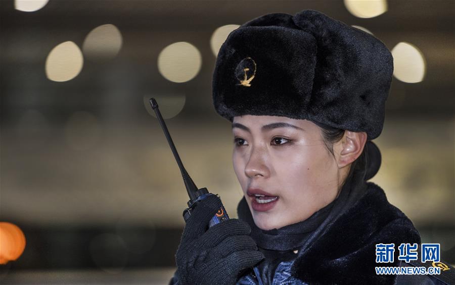 吉如在西安北站站臺上,與檢票口客運人員聯(lián)控(1月14日攝)。今年春運列車開行密度大,站臺崗位人員緊張,吉如時常被調(diào)到站臺進行站臺服務工作。 新華社記者 陶明 攝