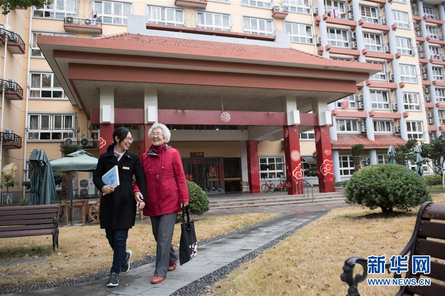 1月17日,一上午的活動(dòng)結(jié)束,張丹俠(左)帶著王育華回杭州市社會(huì)福利中心的宿舍。新華社記者 翁忻旸 攝