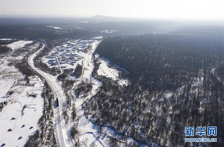 “送水小火車”行駛在林海間,前往送水地點(1月17日攝,無人機照片)。新華社記者 許暢 攝