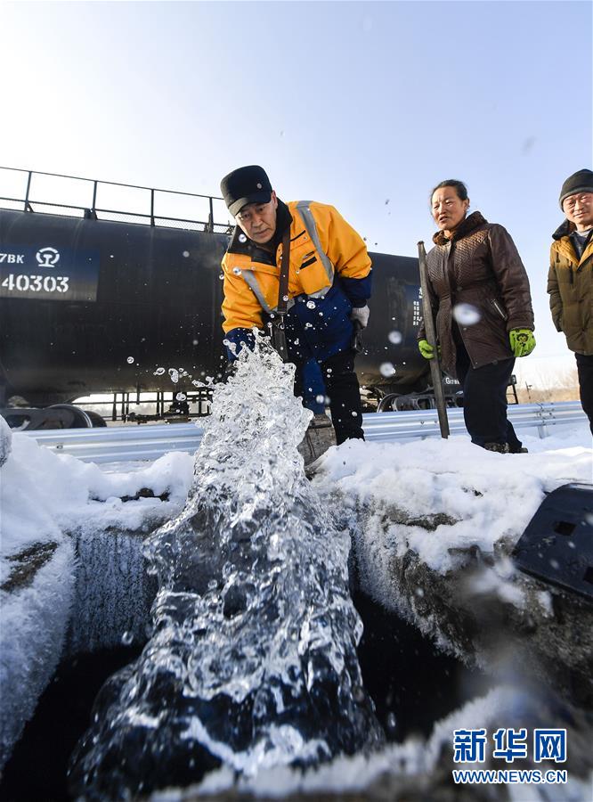 臨近送水地點,送水員黃衛(wèi)東指揮列車前往??奎c(1月17日攝)。新華社記者 許暢 攝