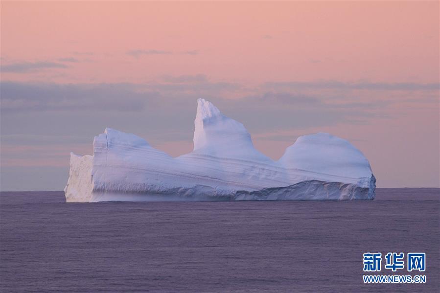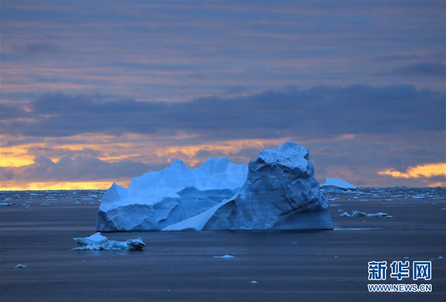 南大洋上的午夜冰山(2019年12月11日攝)。新華社記者劉詩平攝