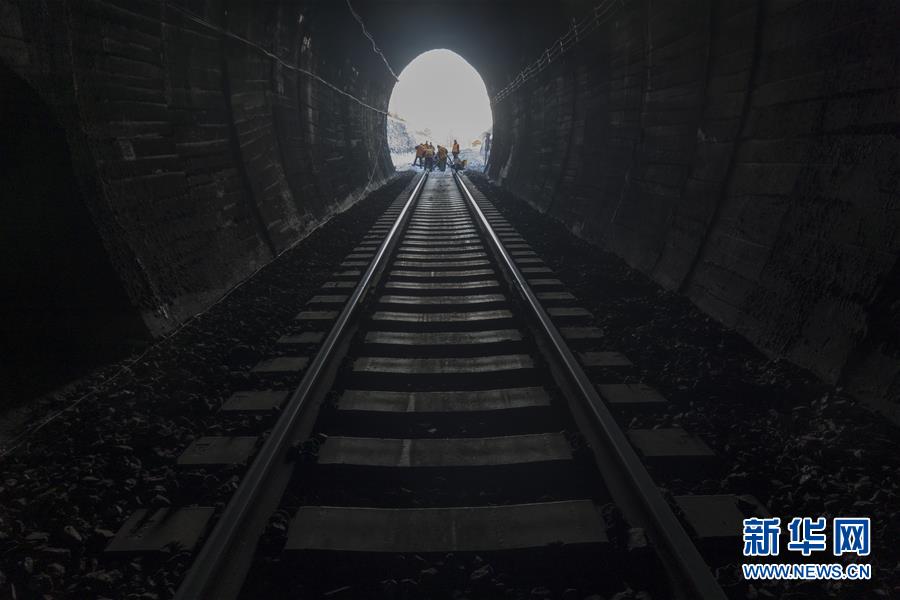 1月6日,在加格達奇工務段西羅奇嶺二號隧道,西羅奇維修工隊工作人員進行維修作業(yè)。新華社記者才揚攝