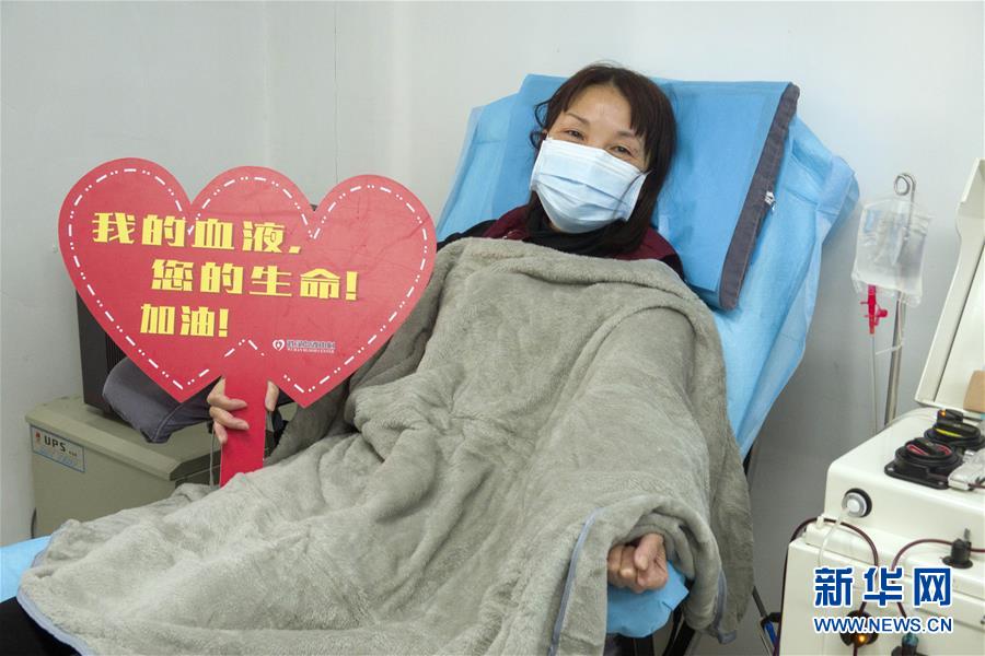 在武漢血液中心的中國(guó)醫(yī)學(xué)科學(xué)院CPnCoV項(xiàng)目組,康復(fù)病人、來(lái)自漢口醫(yī)院的護(hù)士蔡桃英在獻(xiàn)血漿時(shí)拍照留念。她說(shuō)同事們都在一線忙碌,她獻(xiàn)血漿后,再休息幾天就準(zhǔn)備回到崗位上班,她說(shuō)自己感染是由于早期防護(hù)不足經(jīng)驗(yàn)不夠造成的,再次回到工作崗位一定沒有問題(2月17日攝)。 新華社記者 才揚(yáng) 攝