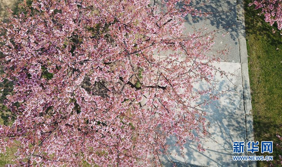 這是2月24日在上海松江辰山植物園內拍攝的櫻花小徑(無人機照片)。 新華社記者 方喆 攝