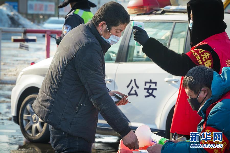 2月24日,工作人員在哈同高速公路哈爾濱收費(fèi)站為車(chē)輛人員登記、測(cè)體溫。 新華社記者 王松 攝