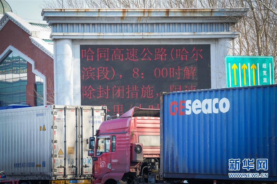 2月24日,汽車在哈同高速公路哈爾濱收費(fèi)站排隊(duì)登記。 新華社記者 王松 攝