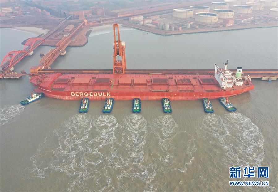 2月24日,一艘40萬噸級輪船在拖輪的協(xié)助下向曹妃甸港區(qū)礦石碼頭靠泊(無人機(jī)照片)。 連日來,河北省唐山港曹妃甸港區(qū)為有效防控疫情、保證安全生產(chǎn),采取對進(jìn)入港區(qū)人員檢測體溫、對車輛進(jìn)行消殺等嚴(yán)格措施,為海、陸交通暢通和物資運(yùn)輸提供保障。 新華社記者 楊世堯 攝