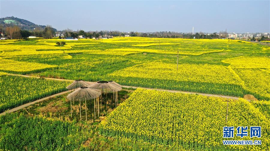 2月25日在四川省崇州市拍攝的油菜花田(無(wú)人機(jī)照片)。 新華社記者 王曦 攝