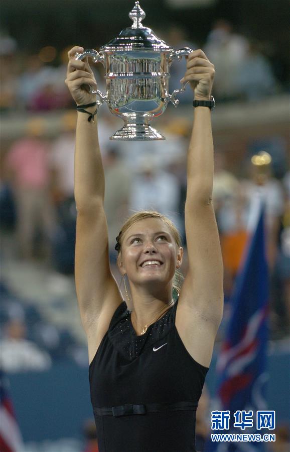圖為2006年9月9日,莎拉波娃在美國網(wǎng)球公開賽女單決賽中戰(zhàn)勝比利時選手海寧,奪得冠軍。 新華社記者趙鵬攝