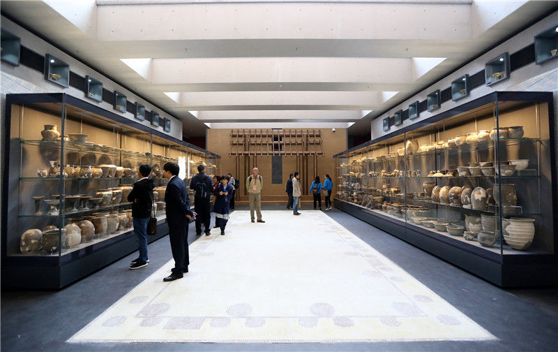 2019年10月19日,河南洛陽(yáng),二里頭夏都遺址博物館。展出的二里頭考古成果陶器(部分)。