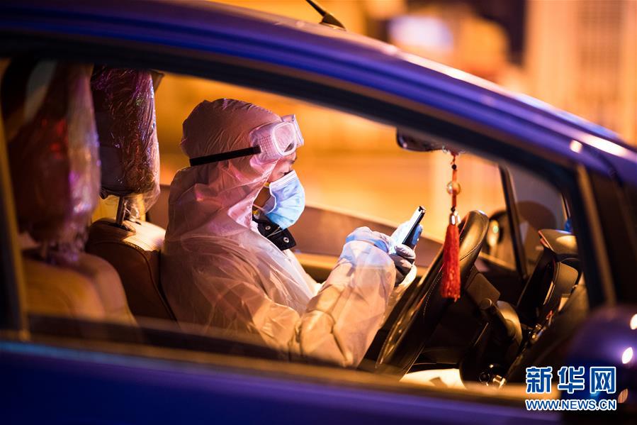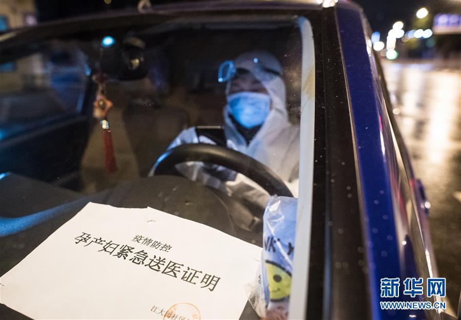 2月29日凌晨,王震接上產婦劉婷后駕車前往武漢市婦幼保健院。新華社記者 肖藝九 攝