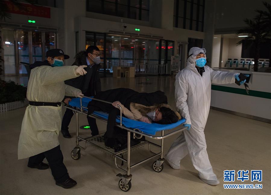 2月29日凌晨,王震(右一)協(xié)助將產婦劉婷送至CT室做產前檢查。新華社記者 肖藝九 攝