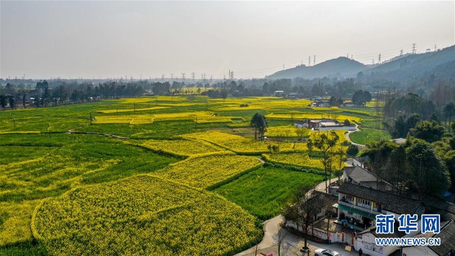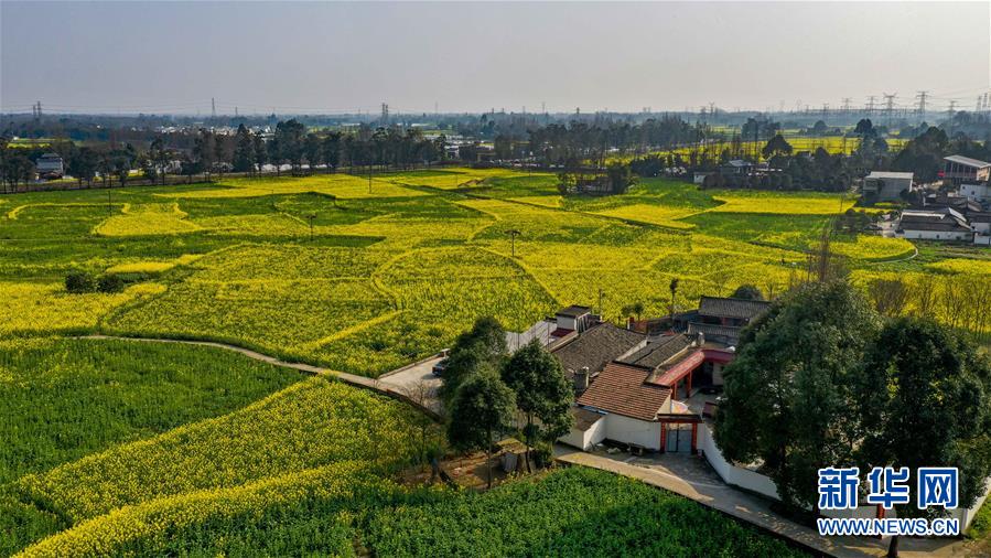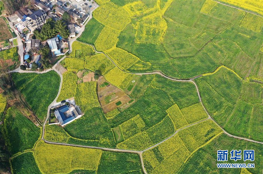 2月25日在四川省崇州市拍攝的油菜花田(無人機(jī)照片)。新華社記者王曦?cái)z