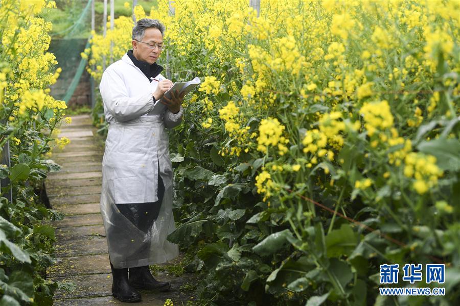 3月5日,重慶市油菜工程技術(shù)研究中心負(fù)責(zé)人李加納教授在觀察記錄油菜生長情況。時下正值油菜花期,重慶市油菜工程技術(shù)研究中心的農(nóng)學(xué)專家?guī)ьI(lǐng)學(xué)生和技術(shù)工人搶抓農(nóng)時,推進(jìn)油菜科研和育種工作。新華社記者 王全超 攝