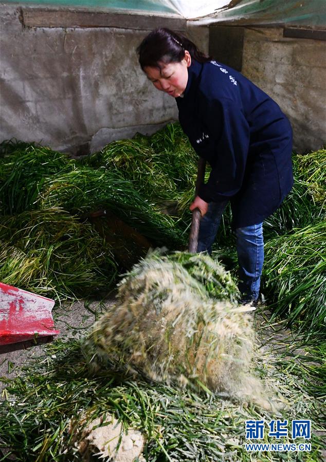 在貴州省銅仁市德江縣平原鎮(zhèn)坳田村,養(yǎng)殖戶在坳田畜牧養(yǎng)殖農(nóng)民專業(yè)合作社準(zhǔn)備牛飼料(2月29日攝)。新華社記者 楊文斌 攝