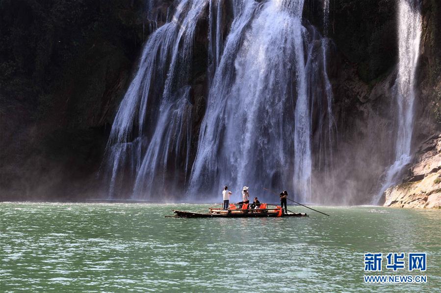 3月8日,游人在云南省曲靖市羅平九龍瀑布群風景區(qū)乘竹筏游覽。