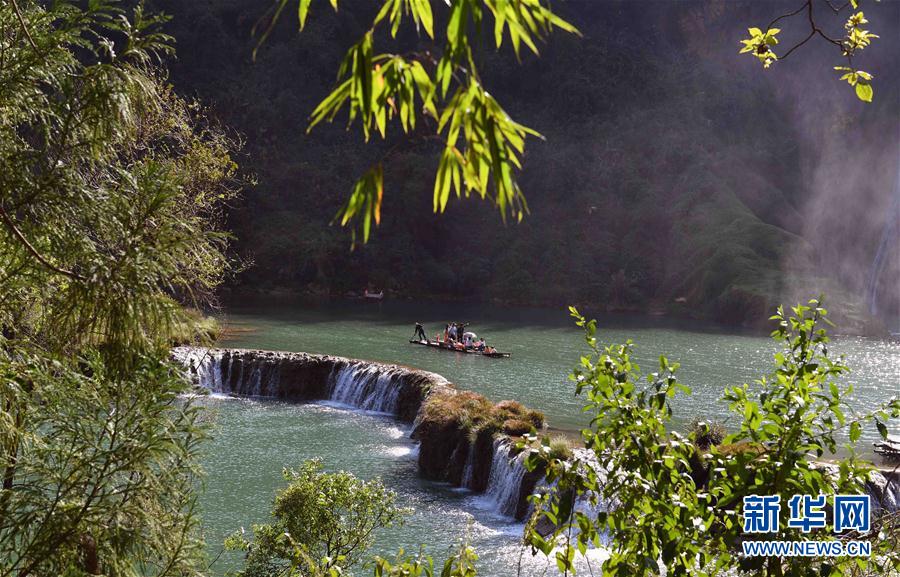 3月8日,游人在云南省曲靖市羅平九龍瀑布群風景區(qū)游覽。 初春時節(jié),云南省曲靖市羅平九龍瀑布群風景區(qū)內,湖光山色清澈秀麗,美不勝收。 新華社記者 楊宗友 攝