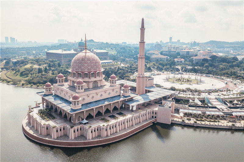 2018年05月30日,位于馬來西亞首都布城粉紅清真寺(Masjid Putra),圖為航拍俯視圖。丁俊豪/視覺中國(guó)