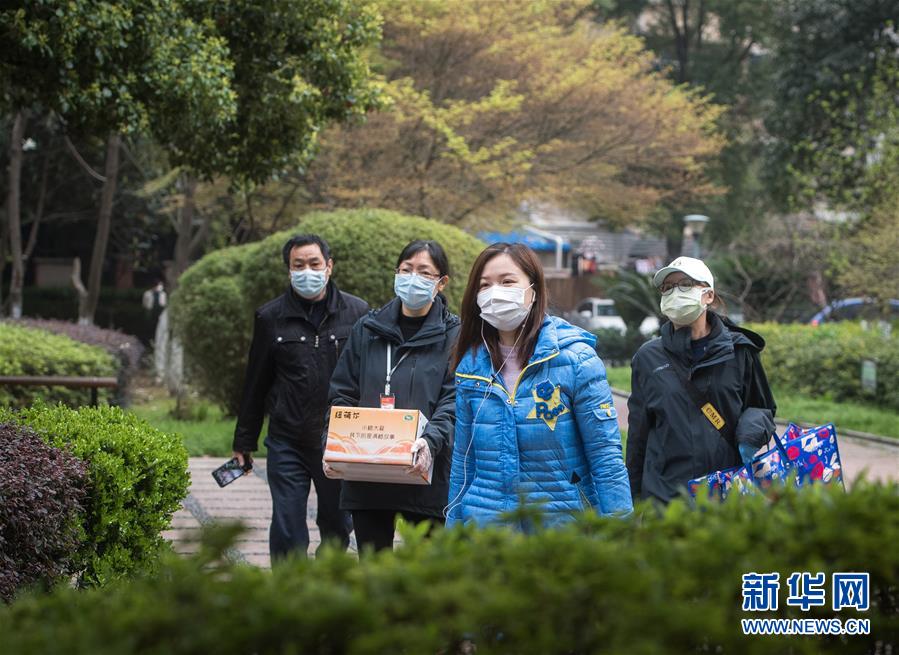 3月12日,小區(qū)樹葉綠了,黎婧(右二)與網(wǎng)格員走在回家路上。 3月12日,插畫師黎婧和84位病友離開自己居住的武漢軟件工程職業(yè)學(xué)院康復(fù)驛站,回到自己家中。他們都是治愈出院的新冠病毒肺炎患者,已經(jīng)在武漢軟件工程職業(yè)學(xué)院康復(fù)驛站進行了14天醫(yī)學(xué)觀察,達到醫(yī)學(xué)標準,成功解除隔離。他們由專車運送至所屬社區(qū)附近的集散點后,在社區(qū)工作人員的陪同下回家。 新華社記者 肖藝九 攝
