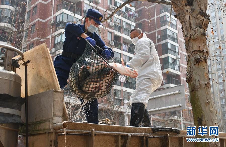 3月13日,武漢市消防救援支隊硚口大隊組織“119黨員突擊隊”等人員120余名,現(xiàn)場幫助將活魚配送到居民家中。當(dāng)日,首批100噸調(diào)配自湖北省咸寧市的活魚運抵武漢市硚口區(qū)11個街道下轄社區(qū)。咸寧是魚米之鄉(xiāng),水產(chǎn)資源豐富。此次戰(zhàn)疫咸寧得到了全國人民的支持,疫情得到良好控制。咸寧送魚,希望傳遞愛心,支持武漢早日戰(zhàn)勝疫情。新華社記者程敏攝