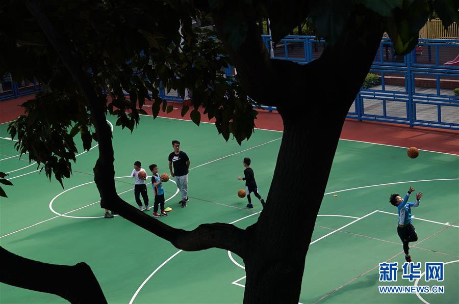 小朋友在籃球場(chǎng)鍛煉(2月23日攝)。新華社記者李鋼攝