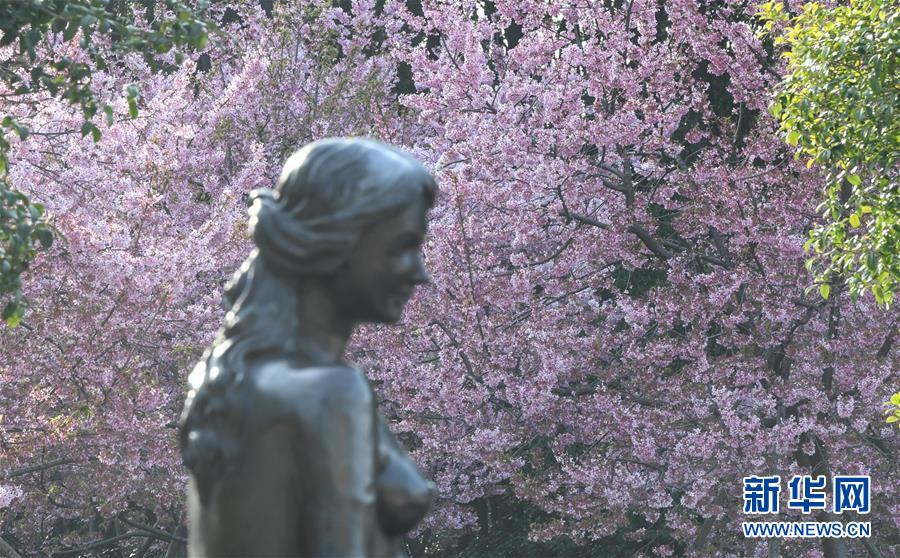 近日,隨著氣溫上升,武漢大學(xué)圖書(shū)館附近一片櫻花開(kāi)放。新華社記者費(fèi)茂華攝